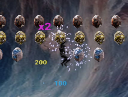There are three rows of crystals, the higher the row, the more points you score.